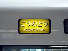 The Kounotori (こうのとり, Kōnotori) is a limited express train service operated by the West Japan Railway Company (JR West) between Shin-Ōsaka and Kinosaki Onsen in Japan since 12 March 2011. It replaced the previous Kitakinki services.[1]