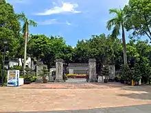 The Yamen (衙府) is located in the centre of the Park and it is the only remaining old Qing building. It was built in 1847 and its interior was dominated by the offices of the Commodore of the Dapeng Brigade (大鵬協府) and the Kowloon Assistant Military Inspectorate (九龍巡檢司衙署). It was designed with three rows and four wings of houses. Its walls and column bases are built from bricks and granite, while the roof is a traditional structure covered with cylindrical and flat tiles. After 1899, the Yamen was used for charitable purposes, like housing elderly. It is now officially classified as a declared monument in Hong Kong. Six exhibition rooms are housed inside.[7]