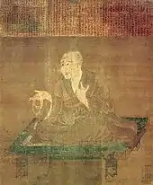 The Portrait of Buddhist monk Gonsō (絹本著色勤操僧正像, kenpon chakushoku gonsō sōshō zō) is a 12th-century Heian period hanging scroll owned by Fūmon-in (普門院). The scroll painted in colors on silk measures 166.4 cm × 136.4 cm (65.5 in × 53.7 in). An inscription on the top tells of a wooden sculpture of Gonsō being created after his death by his pupils praying for happiness in the next world and praising Gonsō's learning and virtue.[13][8]