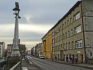 The street was first mentioned on maps of Bromberg from 1857 and 1876, under the name Victoria Straße,[2] in reference to Empress Victoria, wife of German Emperor Frederick III. At the time, it did not extend to Focha Street to the south, but stopped at Albert Straße (today Garbary Street). The southern branch to Focha street was only realized after the second World War. By and large, most of the buildings have been erected in 25 years, from 1878 to 1903.
