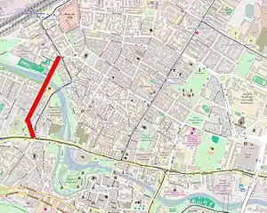 The street is located in the western part of Bydgoszcz downtown district. It runs along a south–north axis, connecting Focha Street in the south to Dworcowa Street in the north. It crosses the Brda river via the Queen Jadwiga bridge (Polish: Most Królowej Jadwigi). The street is about 750 m long.