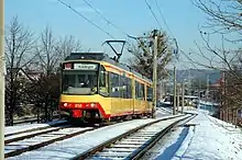 There were now regular services on Sundays, leading to an increase in the number of rail passengers by up to 30 times.[3] So an extension of Stadtbahn route from Bretten seemed to make sense. In 1996, the remaining DB through trains between Karlsruhe and Heilbronn were abandoned. Henceforth, these only shuttled between Bretten-Gölshausen and Heilbronn.