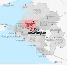 The Krasnoarmeysky constituency (No.47[lower-alpha 1]) is a Russian legislative constituency in Krasnodar Krai. The constituency covers western Krasnodar and its suburbs, as well as several rural districts in central Krasnodar Krai.