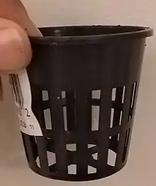 The Kratky method is a passive hydroponic technique for growing plants suspended above a reservoir of nutrient-rich water.[1] Because it is a non-circulating technique, no additional inputs of water or nutrients are needed after the original application, and no electricity, pumps, or water and oxygen circulation systems are required.[2] The Kratky method has applications both for commercial food production and as a small-scale and low-maintenance technique for home growers.[3] It has been described as "the simplest hydroponic system."[4]