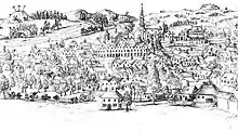 The first written mention of Chrastava is from 1352 as Cratzauia, already referred to as quite big settlement. It was founded probably at the end of the 13th century by German settlers, having been invited by King Ottokar II of Bohemia. They came mainly from the town of Pirna in Saxony and began to mine metals in the vicinity of Chrastava, in particularly copper, tin, lead, iron and silver.[2]
