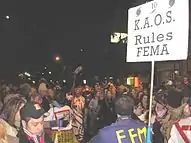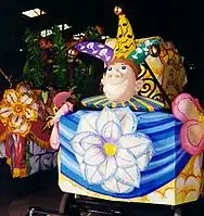 The Krewe du Vieux was established in 1987 as a replacement of the Krewe of Clones, which flopped after the city tried to make it more respectable for visitors who stayed on in the city after the 1986 Superbowl.[4] The Krewe de Vieux is actually an amalgamation of several smaller semi-independent krewes (or sub-krewes) that pool their resources together for parade permits and other expenses and obligations. Several of the sub-krewes predate the Krewe du Vieux, originating as walking clubs or as sub-krewes of the defunct Krewe of Clones in the 1970s and early 1980s. The history behind the parade states that the ruling class of New Orleans wagered if they gave the common people one day a year to go crazy and mock the elites then the satiated masses would allow them to maintain control for the remainder of the year.[5] Participation in the parade is open to anyone who is part of a sub-affiliated krewe in good standing.[6]