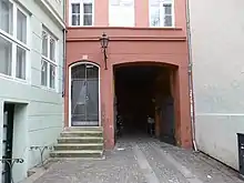 Kringlegangen is a passageway linking the square Gråbrødretorv with the street Valkendorfsgade in the Old Town of Copenhagen, Denmark. A bakery was operated on the site from before 1787 until at least the 1910s. The present building complex (Gråbrødretorv 17/ Valkendorfsgade 32) was constructed in 1856-1857 for master joiner Carl Heinrich Winther. The passageway was not opened to the public until 1975. The name Kringlegangen was inspired by a gilded kringle above the entrance from Gråbrødretorv as well as to the twisting and turning course of the passageway. The entire building complex was listed in the Danish registry of protected buildings and places in 1945.