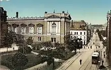 The Oslo Tramway was established as a horsecar network in 1875 by Kristiania Sporveisselskab. In 1887 it rejected a proposal for L. Samson, a real estate developer, to build a line to Majorstuen to serve his projects. He therefore contacted engineers H. E. Heyerdal and A. Fenger-Krog, the latter who had studied tramways abroad.[1] They sent an application that year to the municipality, at a time when there were no other electric tramways in operation in Europe. However, the application did not explicitly state that the company would use electric traction.[2] KSS retained it priority in laying new lines.[2]
