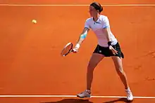 In 2010, she reached the second round on the Australian Open, losing to Samantha Stosur. She qualified for her first ever final in a WTA tournament, the Internationaux de Strasbourg,[1] which Maria Sharapova won in straight sets.[2] She reached the second round of Wimbledon, being knocked out by Justine Henin.