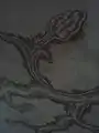 Upon entering the church, passing the vestibule (vapenrum), and looking up to the ceiling of the gallery, it is possible to admire the fresco painted by Carl August Henry Ericsson (1898–1933). The work symbolizes the tree of spiritual life whose branches extend all over the world. Around the central figure of the angel, twelve doves are seen flying spreading their wings, crowned by aureoles (halos). They represent the twelve apostles with the divine message of salvation for the whole world.