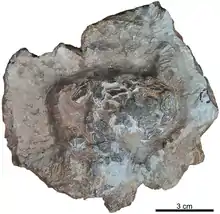 Krokolithes is an oogenus of Crocodiloid eggs. These eggs were laid by an extinct species of Crocodylian. It contains three oospecies: K. dinophilus,[1] K. wilsoni and K. helleri.[2] 1 Fossils of the oogenus have been found in the Oligocene of France, the Oldman and Dinosaur Park Formations of Alberta, Canada, the Campanian Two Medicine Formation of Montana, the Barremian Cabezo Gordo Member of the Blesa Formation of Spain, and the Kimmeridgian of the Lourinhã Formation of Portugal.