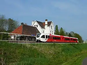 Kropswolde (Dutch pronunciation: [krɔpsˈʋɔldə]; abbreviation: Kw) is an unstaffed railway station in Foxhol near Kropswolde in the Netherlands. The station was opened on 1 May 1868[2] and is located on the Harlingen–Nieuweschans railway between Groningen Europapark and Martenshoek in the province of Groningen.[3] Train services are operated by Arriva.