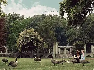Krug Park, located at the northern end of the Parkway St. Joseph in Saint Joseph, Missouri, is a large city park with Italian Renaissance structures, extensive landscaping and flowerbeds. The park's 163 acres (0.66 km2) house an amphitheater, a lagoon, rose gardens, picnic areas, an Italian castle, scenic walking trails, and various playgrounds.[1] Krug Park "lights up" during the holiday season as Holiday Park.