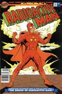 Radioactive Man was one of the four "premiere" series released by Bongo Comics in late 1993.[20] The series has been released in two volumes, an early run from 1993 to 1994,[5] and the current run that's been going on since 2000. Smaller Radioactive Man stories have also been published in Simpsons Comics.[33] As a tie-in promotion of The Simpsons Movie a special "Radioactive Man Comic Book Edition #711" was sold at 7-Elevens as part of their Kwik-E-Mart promotion.[34]