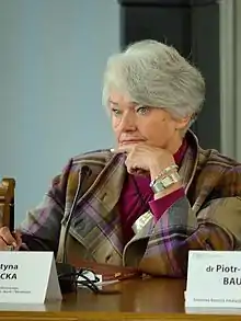 Krystyna Maria Łybacka (Polish pronunciation: [krɨˈstɨna wɨˈbat͡ska]; 10 February 1946 – 20 April 2020)[1] was a Polish political figure who served in the country's national Parliament (Sejm), since 1991 to 2014 and from October 2001 to May 2004, and was a member of the cabinet, with the title of Minister of National Education.