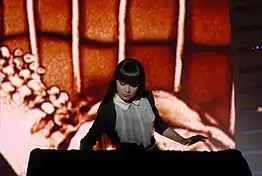 In 2010, she collaborated with Japanese female singer-songwriter Fuyumi Abe, featuring in the music video of the single "Sora Ni Mau" performing sand animation.[55]