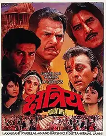 Kshatriya (transl. Warriors) is a 1993 Indian Hindi-language action film directed by J. P. Dutta. It features an ensemble cast of Sunil Dutt, Dharmendra, Vinod Khanna, Sunny Deol and Sanjay Dutt, with Rakhee Gulzar, Meenakshi Seshadri, Raveena Tandon, Divya Bharti and Sumalatha.