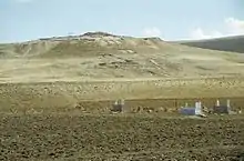 Two Hittite town consisted of an upper and lower city. The upper city had a town wall with towers and several gates.[1] Only small parts of the living quarters were excavated. The houses had irregular plans and were separated by small streets. Two larger houses were excavated in the middle of the town, not far away from the main temple. Typical for these houses is a central hall with many smaller rooms around it. In one of the houses (house A) were found 45 cuneiform clay tablets with ritual texts. It seems possible that house A was the house of a priest.[2] The main deity of Sarissa was the Weather-God; he is named in the treaty between Hattusili III and Rameses II. The temple of the god is the largest Hittite temple so far excavated. It is built of stones with a huge courtyard in the middle, about 76 by 74 m large.[3] a second temple was in the north of the city. It has again a larger courtyard and is about 54 by 36 m big. It was perhaps the temple of the goddess Anzili, who is mentioned in the texts of the town. Within this temple were also found seal impressions of a so far unknown king.[4] About 5 km south of the town was lake. Next to it were found the building of a temple. In Hettite texts is mentioned that the king came to the town and went directly to the Huwasistone of the Weather god. The excavators wonder whether this temple and lake are actually the place of the Huwasistone, where certain rituals were performed.[5]