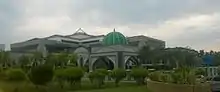 In 1862, ex-Sultan of Riau-Lingga, Sultan Mahmud IV Muzaffar Shah went to Terengganu from Bangkok on a Siamese vessel.[19][20] The British requested that the ex-Sultan to be withdrawn because the British accused the ex-Sultan and also the Sultan of Terengganu, Sultan Omar of supporting Wan Ahmad.[21][22] Wan Ahmad had constantly attacked Pahang using Kemaman as his base and British trade there were disrupted by the constant attacks.[23] The Siamese agreed to British request, but they have yet to follow through with their agreement. The Strait Settlements Governor, Sir Orfeur Cavenagh sent three ships, HMS Scout, HMS Coquette and a steamer Tonze to Kuala Terengganu, under the command of Captain Corbett, accompanied by Major MacPherson.[19] They were sent with orders to compel the ex-Sultan of Riau-Lingga to be sent back by the British to Siam, and to call upon the Sultan to cease supporting Wan Ahmad. After the Sultan of Terengganu declined to surrender the ex-Sultan to the British, the ships bombarded Kuala Terengganu.[24] The Sultan of Terengganu and the ex-Sultan had fled Kuala Terengganu during the bombardment. The ships then returned to Singapore. Kuala Terengganu was ravaged by a fire in 1882.[25][26] The fire that swept through Kuala Terengganu destroyed many buildings, including Green Palace (Istana Hijau), the Sultan's palace. Maziah Palace (Istana Maziah) was later built to replace the destroyed palace.[27]