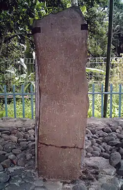 Kuburajo Inscription, also called Kuburajo I Inscription, is one of the many inscriptions left by King Adityawarman of central Sumatra.[1] The inscription was found in Kuburajo village, Lima Kaum district, Tanah Datar Regency, West Sumatra, Indonesia in 1877 besides the main road from Batusangkar city to Padang city.[1] The inscription was registered by N.J. Krom in Inventaris der Oudheden in de Padangsche Bovenlanden ('Inventory of Antiquities in the Padang Highlands', OV 1912: 41).[2] The inscription is written in Sanskrit,[1] and consists of 16 lines.[2] This inscription was lost in 1987, but was rediscovered.[1]