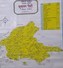 Kuchaman is a City and District headquarter Located In Urban Area of Central-West Rajasthan, India. It comes under Didwana - Kuchaman District (Separated from Nagaur District in 17th March 2023 as a 38th District of state of Rajasthan) in the Indian state of Rajasthan. The city includes a lots of Havelis in the Shekhawati and Marwari style and a fort overlooking the city. Fresco paintings there depict flowers, motifs, and Hindu mythology.The Kuchaman city lies about midway between Jodhpur, Jaipur, Ajmer and Sikar.