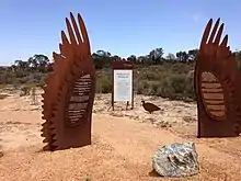 The Kukenarup Memorial is a memorial 15 kilometres (9.3 mi) west of Ravensthorpe, Western Australia[1] that commemorates the killing of many Noongar people following the death of John Dunn, whose family had taken out a pastoral lease in the 1870s. Reports of the incidents vary. The Memorial to the historical incident was opened in May 2015 in the region.[2] Accounts agree that John Dunn was killed in 1880. Yandawalla (Yungala) was arrested and charged with the crime. Dartaban (Dartemera; "Jumbo") was also involved, and was a witness in the trial of Yandawalla (1881). Yandawalla was acquitted of the murder of John Dunn. Reprisal killings of a number of Noongar people occurred, seemingly both prior to and following that acquittal.[3] John Dunn's grave is at Cocanarup Homestead.[4]