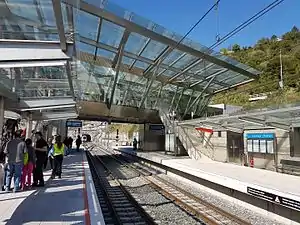 Kukullaga is an open-air station located at-grade in a neighbourhood with the same name, part of the municipality of Etxebarri. The station was designed by British architect Norman Foster[4] The station can be accessed from the western side, facing Ametzola Park or from the eastern side using an inclined elevator that connects the station with the neighborhood of San Antonio, which is located at a higher altitude.