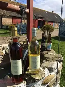 Kullabergs vingård is a vineyard located in Höganäs Municipality, Skåne County, Sweden[1] Kullabergs vingård produces wine, cider and distillates from estate grown grapes and fruit. The property is a part of the Balderup estate. Winemaker is K Felix G Åhrberg, oenologist from Klosterneuburg[2] in Austria. The oldest field is 2 ha big, planted in 2006, containing the varieties Solaris, Regent and Rondo. In 2017, 7 ha were planted with Solaris and the new varieties Souvignier gris, Muscaris and Donauriesling. During 2019 a further 4 ha were planted with blue varieties Pinot Nova and Cabernet Noir. The vineyard is entirely planted with fungi resistant so-called PIWI varieties allowing sustainable viticulture without pesticides and herbicides. In Sweden, the products are sold through Systembolaget.