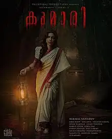 Kumari is a 2022 Indian Malayalam-language mythological fantasy film written and directed by Nirmal Sahadev, featuring Aishwarya Lekshmi in titular role. It also features Shine Tom Chacko and Surabhi Lakshmi in supporting roles.[1] The film is produced by Giju John, Nirmal Sahadev, Sreejith Sarang and Jakes Bejoy under the banner The Fresh Lime Sodas. Abraham Joseph is the cinematographer of the film, while Jakes Bejoy composed the songs. Kumari is co-produced by Aishwarya Lekshmi, Priyanka Joseph and Mridhula Pinapala[2][3]