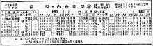 During the tourist season, sightseeing busses operated from Naegŭmgang, and various sightseeing tours were offered, along with discounted tourist tickets. Occasional special trains were also run during the peak season. Between May and October, a direct service between Kyŏngsŏng (Seoul) and Naegŭmgang was operated, using a Sentetsu sleeping car.[1] This service was started in 1930 and operated until July 1941, when wartime measures caused the suspension of tourist operations.[4]