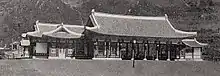 However, the outbreak of the war changed circumstances, and wartime considerations led to the merger of all electric utilities on the Korean Peninsula into four regional companies, north, central, west, and south. The Kŭmgangsan Electric Railway was the most powerful of the companies to be merged in the central region, and so its merger with the Kyŏngsŏng Electric Company was the last to take place. The Kŭmgangsan Electric Railway Company was absorbed by the Kyŏngsŏng Electric Company on 1 January 1942, and from then on, the railway line was known as the Kŭmgangsan Electric Line of the Kyŏngsŏng Electric Company.[4]