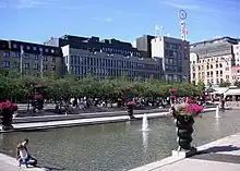 North of the park is Hamngatan with the department stores PK-huset and Nordiska Kompaniet (NK) facing the park.