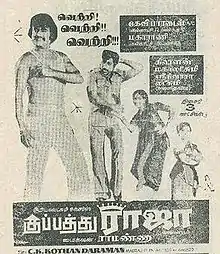 Kuppathu Raja (transl. King of the slums) is a 1979 Indian Tamil-language film, directed by T. R. Ramanna. The film stars Rajinikanth, Vijayakumar, Manjula Vijayakumar and Padmapriya. It is a remake of the 1972 Hindi film Do Yaar.[1][2]