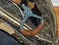 Igi (contoured side bands) of a Japanese saddle, showing the slot for the stirrup strap (Chikara-gawa or gekiso)