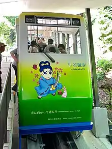 The car in use as at March 2006 was nicknamed Ushiwaka-gō III, after Minamoto no Yoshitsune (called Ushiwakamaru in his childhood), who was put and got training in the temple. By May 2018 the car in use was "Ushiwaka IV".