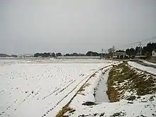 The western half of the municipality covered a part of the Ōu Mountains. This area is less populated but a ski and spa resort is located southeast of Mount Kurikoma. Two rivers, Nihasama and Sanhasama, run toward the southeast from the mountain. Both make valleys of 1 - 3 kilometers width on reaching the eastern area, which are mainly cultivated as rice fields. Iwagasaki is located on the north bank of Sanhasama River. Nihasama (Second Hasama), Sanhasama (Third Hasama) and Ichihasama (First Hasama) merge to form the Hasama River east of the former Kurikoma Town.
