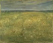 By 1896, Kuroda was at the peak of his career.[11] That May Okakura Tenshin, the Dean of the Tokyo School of Fine Arts (Tokyo Bijutsu Gakkō, present-day Tokyo National University of Fine Arts and Music), appointed Kuroda as the director of the newly established Department of Western-style Painting.[14] This allowed him to design an even broader curriculum, meant for general students of art, and to be better equipped to reach a broader public. An academic role, with its emphasis on structure and conformity, contrasted with the painter's focus on individuality, but Kuroda nonetheless approached his new role with zeal. In particular, Kuroda stressed the importance of painting outdoors directly from nature (plein air), and insisted that courses in anatomy and the sketching of a live nude model be included in the curriculum.[13]