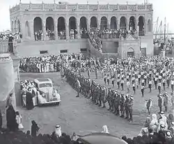 From 1946 to 1982, Kuwait experienced a period of prosperity driven by oil and its liberal atmosphere.[24][25] In popular discourse, the years between 1946 and 1982 are referred to as the "Golden Era".[24][25][26] In 1950, a major public-work programme began to enable Kuwaitis to enjoy a modern standard of living. By 1952, the country became the largest oil exporter in the Persian Gulf region. In the following year, the country's annual oil income grew to $169 million. This massive growth attracted many foreign workers, especially from Palestine, Egypt and India and helped finance the development of a new master plan, which the state approved in 1952. In June 1961, Kuwait became independent with the end of the British protectorate and the sheikh Abdullah Al-Salim Al-Sabah became an Emir. Under the terms of the newly drafted constitution, Kuwait held its first parliamentary elections in 1963. Kuwait was the first Persian Gulf country to establish a constitution and parliament.