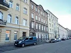 The tenement was first owned by a rentier, Adolf Frölich living in "Friedenstraße" (today's Jasna street).[9] Its original numbering ("1a" Blumenstraße) is still visible on the entrance lintel.