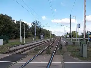 Kyhna station (German: Haltepunkt Kyhna) is a railway station in the municipality of Kyhna, located in the Nordsachsen district in Saxony, Germany.