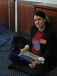 Kylie Sturgess is a past President of the Atheist Foundation of Australia,[1] an award-winning blogger, author and independent podcast host of The Token Skeptic Podcast. A Philosophy and Religious Education teacher with over ten years experience in education, Sturgess has lectured on teaching critical thinking, feminism, new media and anomalistic beliefs worldwide. She is a Member of the James Randi Educational Foundation (JREF) Education Advisory Panel and regularly writes editorial for numerous publications, and has spoken at The Amazing Meeting Las Vegas, Dragon*Con (US), QED Con (UK). She was a presenter and Master of Ceremonies for the 2010 Global Atheist Convention and returned to the role in 2012.[2] Her most recent book The Scope of Skepticism was released in 2012. She is a presenter at Perth's community radio station RTRFM,[3] and a winner at the 2018 CBAA Community Radio Awards in the category of Talks, with the show Talk the Talk[4] In 2020 she was in the final eight in the Three-Minute Thesis (3MT) Asia-Pacific virtual showcase.[5]