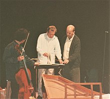 In 1974, Neville Marriner encouraged Heltay to form the Chorus of the Academy of St Martin in the Fields,[2] composed of straight, accurate voices and designed to match the instrumental sound of the by then world-famous orchestra. The choir made its debut in 1975 in Düsseldorf and was soon an established feature of the orchestra's programming. Heltay's choral and Marriner's instrumental styles matched perfectly, and the partnership of 25 years took Heltay and the Chorus through numerous concerts, tours and 28 recordings from the major choral repertoire with soloists such as Dietrich Fischer-Dieskau, Janet Baker, Kiri Te Kanawa and Anthony Rolfe Johnson.[8] Performances with Heltay as chorus master included the 250th-anniversary of Handel's Messiah in Dublin in 1992 and the closing concerts of the handover of Hong Kong in 1997.[5] and their recordings also include the soundtrack for Amadeus in 1984,[3] and the UEFA Champions League Anthem.[9]