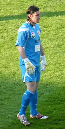 László Köteles (Hungarian pronunciation: [ˈlaːsloː ˈkøtɛlɛʃ]; born 1 September 1984) is a Hungarian former football goalkeeper.