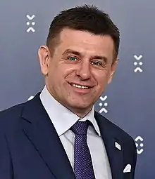 László Sólymos (born 16 November 1968) is a Slovak politician of Hungarian ethnicity from the former Most-Híd party who was the Minister of Environment of Slovakia from 23 March 2016 to 28 January 2020. He resigned after a drunken incident in a Bratislava restaurant in which he and his brother caused EUR 1,000 in damage, and was replaced by Árpád Érsek from the same party.[1][2]