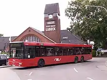 The Lübeck-Travemünde Strand railway line is a mostly single-track, electrified railway in the German state of Schleswig-Holstein. It mainly serves local services to Travemünde’s Baltic Sea beach, the Baltic Sea ferries and suburbs of Lübeck.