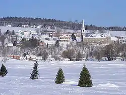 L'Ange-Gardien in winter as seen from the frozen Saint Lawrence River.
