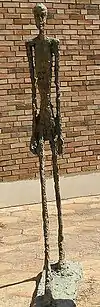 In 1960, Giacometti was asked to be part of a public project by the Chase Manhattan Plaza in New York to plant bronze figures outside the building.[6] He created several sculptures, with L'Homme qui marche I among them.[9] Giacometti struggled with the project and eventually abandoned the commission.[6] However, in 1961 he cast the life-size work in bronze and exhibited it at the Venice Biennale a year later.[9] L'Homme qui marche I was created at the high point of Giacometti's mature period and represents the pinnacle of his experimentation with the human form.[10] The piece is considered to be one of the most important works by the artist[8][11] and one of the most iconic images of Modern art.[12]