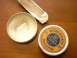 In addition to products sourced from Provence, shea butter is purchased directly from women's groups in Burkina Faso as Fair Trade with the ECOCERT certification. The shea tree is considered sacred, and its butter is known as "women's gold" because it is how the women make their money. Shea butter traditions are still used, such as only fallen fruit may be collected by women, and only women know the secret to making shea butter.[21]