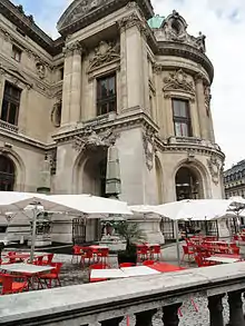 L'Opéra Restaurant is a restaurant in Paris, France. Built into the Palais Garnier opera house's east facade, the restaurant is at the intersection of Gluck and Halévy streets, at the Place Jacques Rouché, in the 9th arrondissement. The restaurant premiered in 2011, 136 years after the Opera itself was opened.[1]