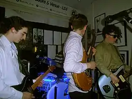 The band's music has been categorised as post-punk,[19][20] indie rock,[14][21] alternative rock[22] and indie pop,[10] often making use of elements of funk, jazz, punk rock,[23] dream pop, gothic punk,[24] shoegazing,[25] psychedelia and pop music.[11] Far Out Magazine called them "gloom punks",[25] while Yahoo! News called them "grunge pop",[26] and the Guardian called them "noir pop".[14] Dork magazine writer Finlay Holden described them as a playing a part in the wave of British post-punk gaining popularity in the early-2020s, alongside Black Country, New Road and Dry Cleaning.[27] Their music makes use of angular guitar parts,[28] chaotic rhythms and both gothic and danceable parts.[22] Evening Standard described Kane's vocals as "bring to mind the half-drunk-sounding growls of Iceage’s Elias Rønnenfelt".[20]